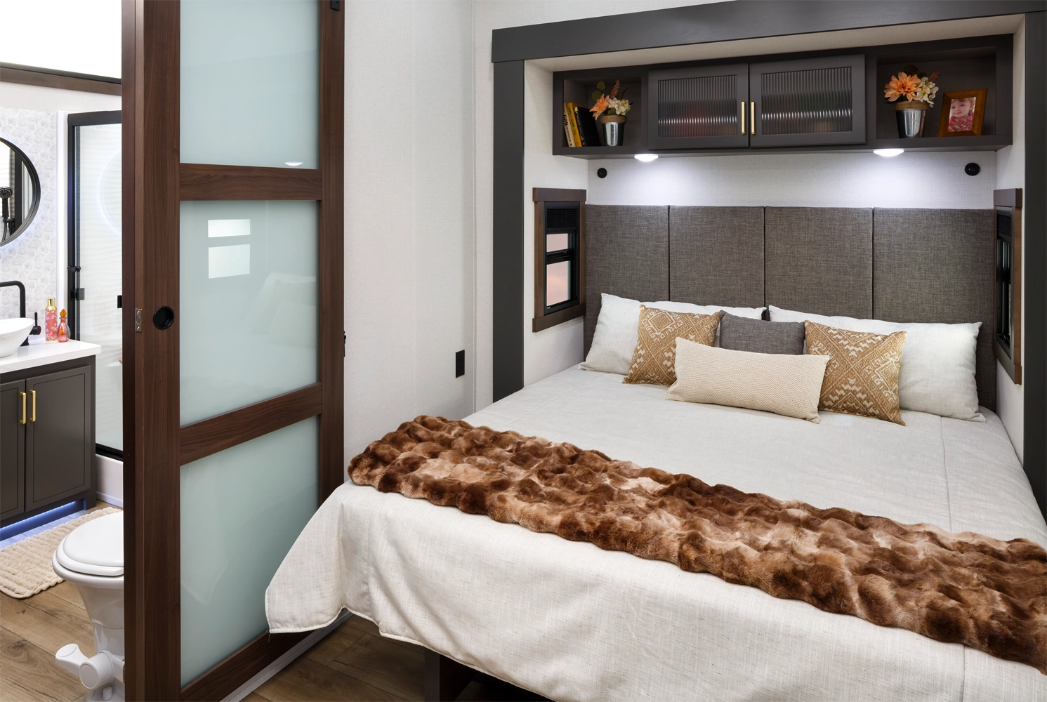 • Residential-Style Headboard with Luxurious Bedding Décor