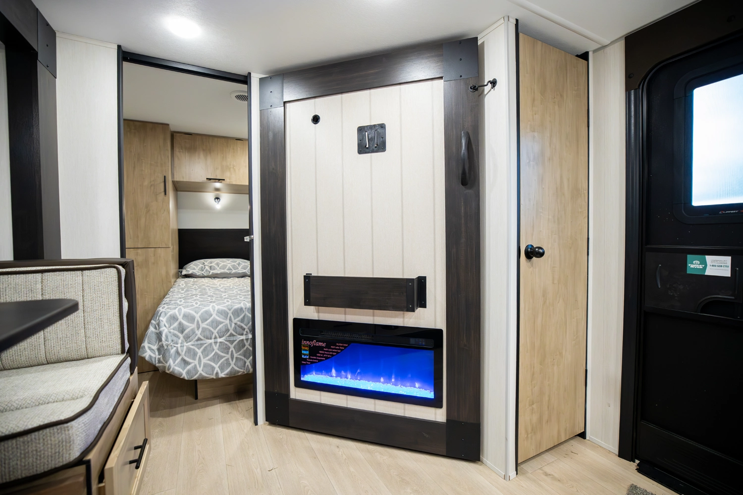 • Blackout Glass, Safety Slam, Friction Hinge Entry Door with Window and Shade Prep (N/A on LP models)