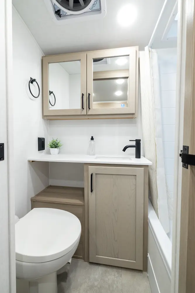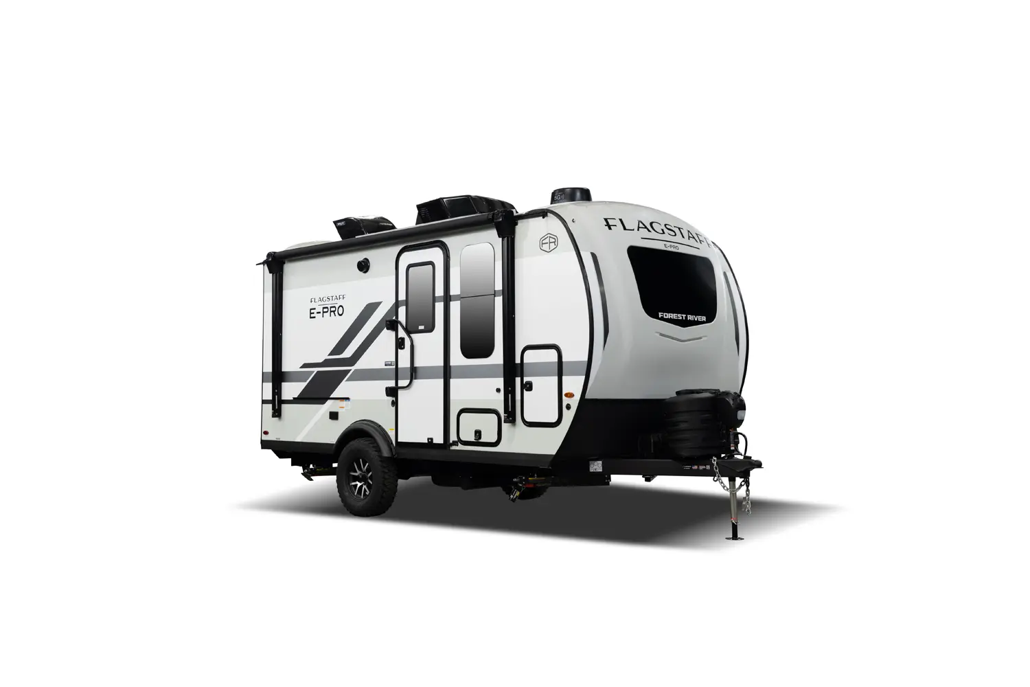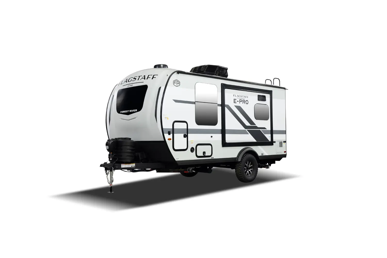 The Flagstaff E-Pro 15FBS delivers a smart, space-efficient layout and a compact, easy-to-tow trailer. The Murphy bed quickly converts into a comfortable sofa, giving you both living and sleeping space. A functional rear kitchen offers solid prep space and storage, while the large side bathroom features a squared shower providing extra comfort and room not often found in trailers this size.