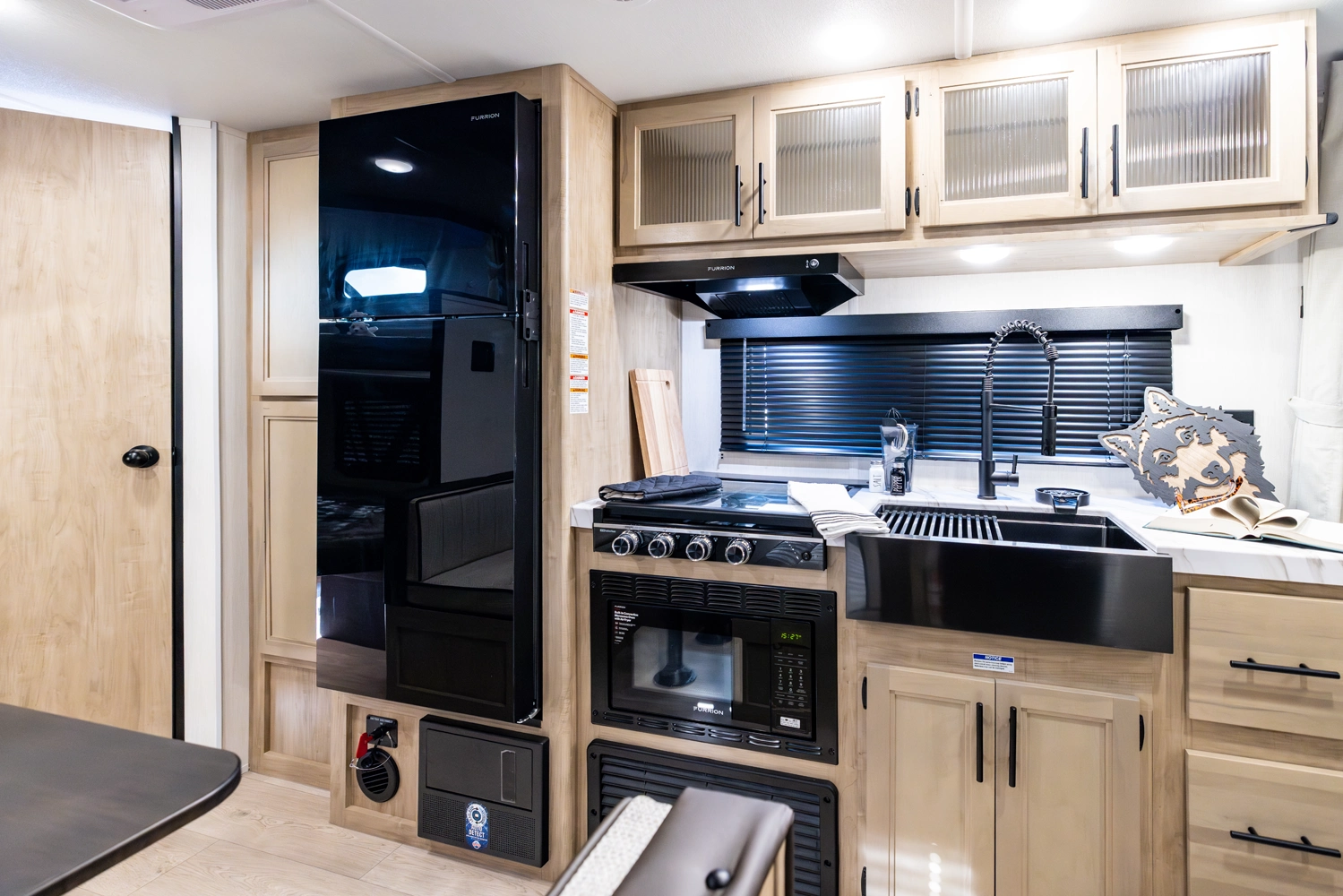 • Blackout Glass, Safety Slam, Friction Hinge Entry Door with Window and Shade Prep (N/A on LP models)