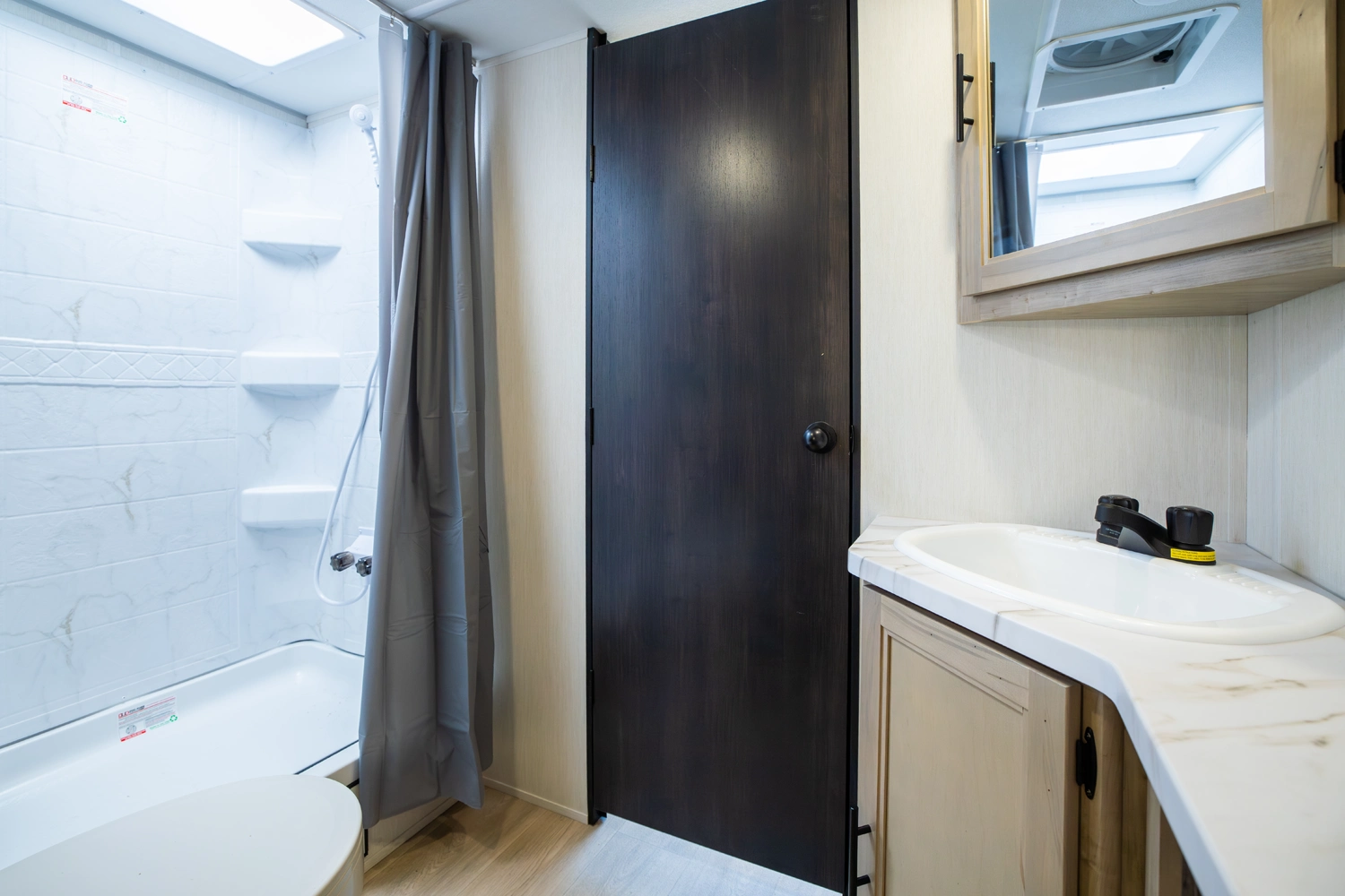 • Blackout Glass, Safety Slam, Friction Hinge Entry Door with Window and Shade Prep (N/A on LP models)