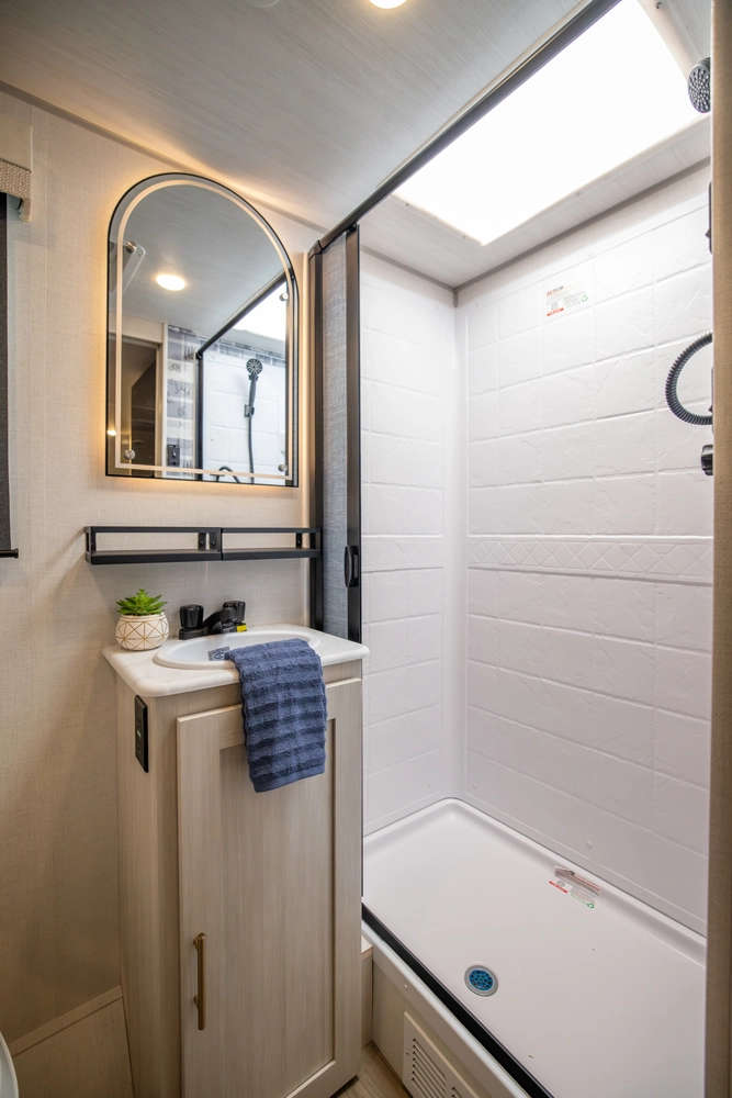 • Upgraded shower enclosure (select models)