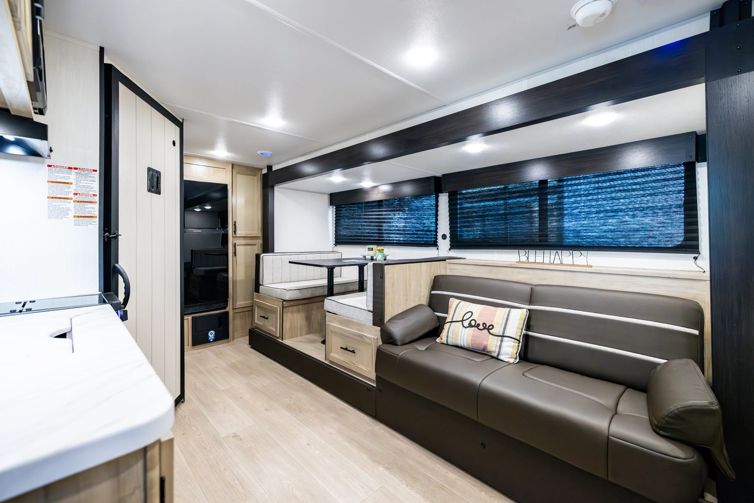 • Blackout Glass, Safety Slam, Friction Hinge Entry Door with Window and Shade Prep (N/A on LP models)